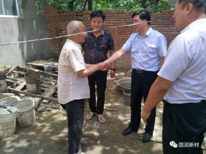 后一站來到了廟后村九組的裴新合家中。見到裴新合老人,親切地詢問著家中的情況。當了解到家中僅有一位勞動力時,王偉表示,國潤新材的大門為他們敞開,企業會為其提供合適的勞動崗位。同時決定對老人家中的院墻進行推倒重建,并搭建遮陽棚和水池。臨走之際,老人緊握著王偉的手,對企業關懷表示深深的感謝。